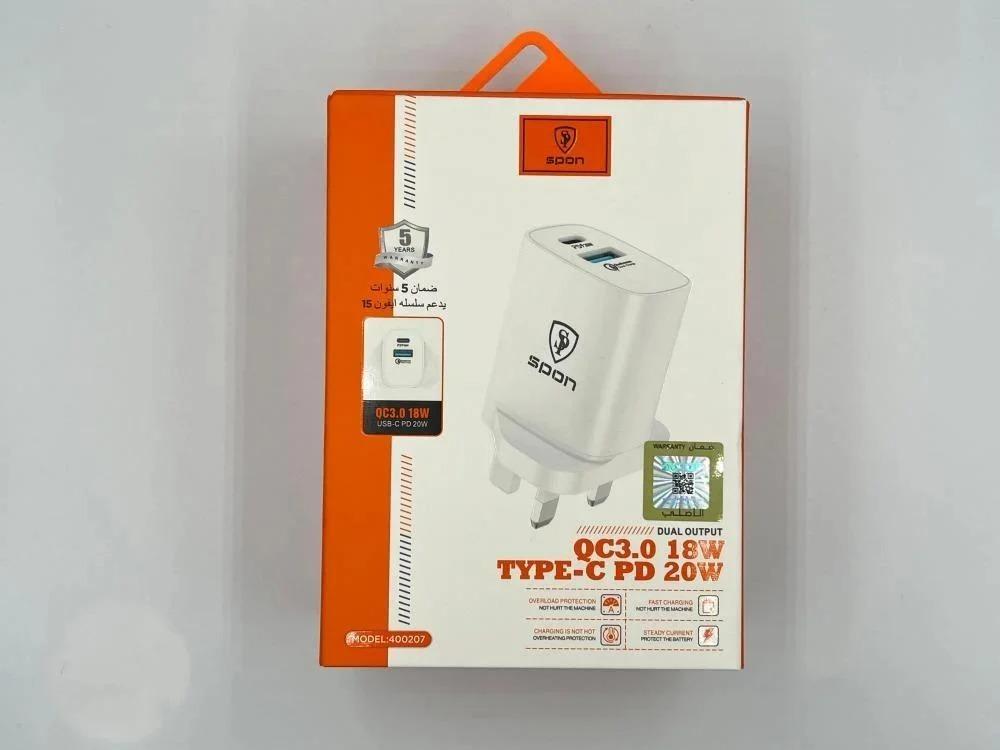 - اقتني الآن شاحن سريع بمنفذين PD - USB قوة 38W ماركة SPON من تك هاتش واستمتعي بأداء شحن احترافي وسريع يلبي كل احتياجاتك اليومية بكل أناقة